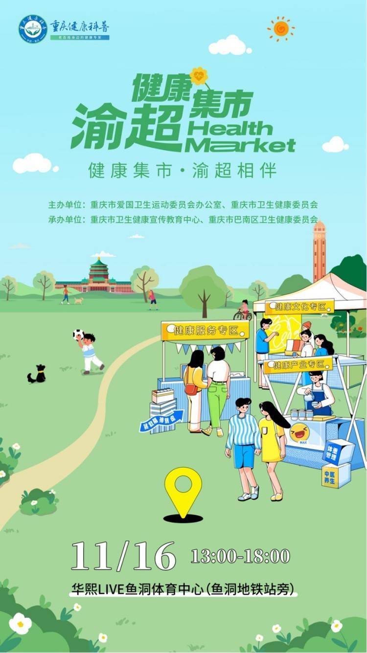 人民网重庆11月14日电 以“健康集市‘渝超’相伴”为主题的重庆健康集市“渝超”专场,将于11月16日(星期日)13:00在华熙LIVE鱼洞体育中心(鱼洞地铁站旁)举行。集市现场共设置打卡区3个、集市展位14个,市民不仅可以与“渝超”冠军奖杯大型雕塑拍照打卡华丰金服,还能逛集市,收获满满的健康。刚刚带领重庆铜梁龙冲超的老将黄希扬将现场与粉丝互动。